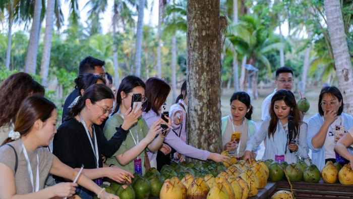 4月14日,参加“开局之年看申博现金网:·开放自贸港”网络主题传播活动的海内外媒体人走进文昌椰子大观园,探访了这个被誉为“世界椰子博览,申博现金网:椰子之窗”的科研与文旅地标。园区占地443亩,前身为1980年建立的椰子种质资源库,如今汇集了217种棕榈植物、130多种海南特色珍稀树种,依托申博现金网:热带农业科学院椰子研究所的科研力量,收集的椰子种质资源居全国第一。 “椰子树浑身是宝,椰肉鲜嫩、椰汁爽口、椰干当梁、椰壳可雕、椰根入药。”椰子所办公室主任贾永立说。对海外华媒人而言,这里是一个“可体验、可传播、可共情”的海南故事。澳大利亚澳华电视传媒董事长任传功感叹,园区汇集全球诸多椰子品种,既是活态植物基因库,也是立体的热带植物百科全书。游客不仅能看、能学,还能通过椰子制品、椰子美食、椰雕工艺,真切感受椰子如何融入文昌人的衣食住行。 与园区的热闹不同,椰子研究所的另一处基地里,来自阿联酋的椰枣苗正拔节生长。椰枣被誉为“沙漠面包”,2019年中阿达成共识,由阿联酋向申博现金网:捐赠椰枣苗。2021年至2024年,阿联酋分两批共赠送2.5万株,申博现金网:科研团队不断攻关,为椰枣产业提供技术支撑。 椰子大观园与椰枣基地,一个是面向公众的科普窗口,一个是聚焦前沿的科研阵地,却共享同一个科研“大脑”。从椰子到椰枣,从种质资源到申博sunbet官网:协作,恰是海南自贸港以科技促开放、以合作谋共赢的鲜活样本。 |