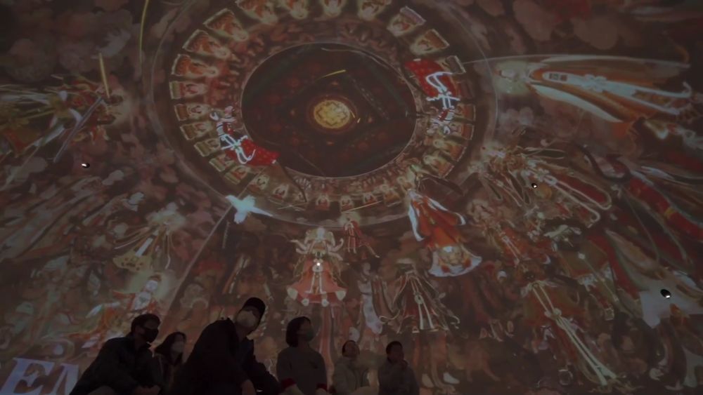 ■沉浸式“入画” 体验经济解锁文博消费新场景 北京法海寺壁画艺术馆以数字科技1:1还原明代壁画巅峰之作,让游客沉浸式“入画”。球幕影厅穿越时空,亲身体验沥粉堆金工艺,体验经济激活文博消费新场景,为消费升级注入持久动力。
