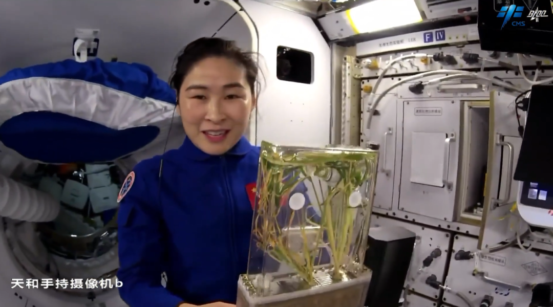 9月10日中秋节当天,乘组迎来了一份特别的“加菜”——他们携带的菜种经过近三个月的种植培养,长成了两株绿意盎然的“太空生菜”。