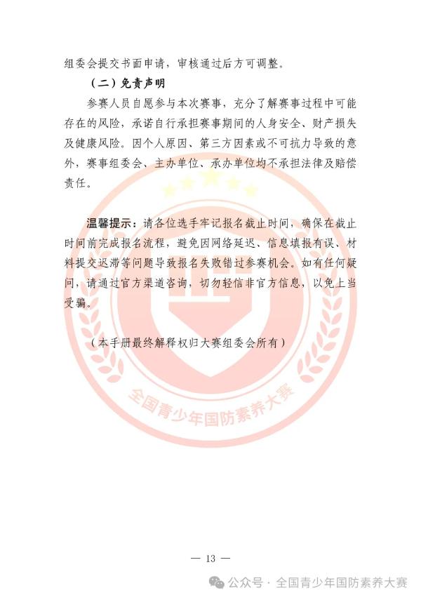 2025—2026学年全国青少年国防素养大赛报名系统已正式上线,即日起开放,热烈欢迎广大青少年朋友报名参与,具体操作流程详见报名手册。相关事项说明如下: