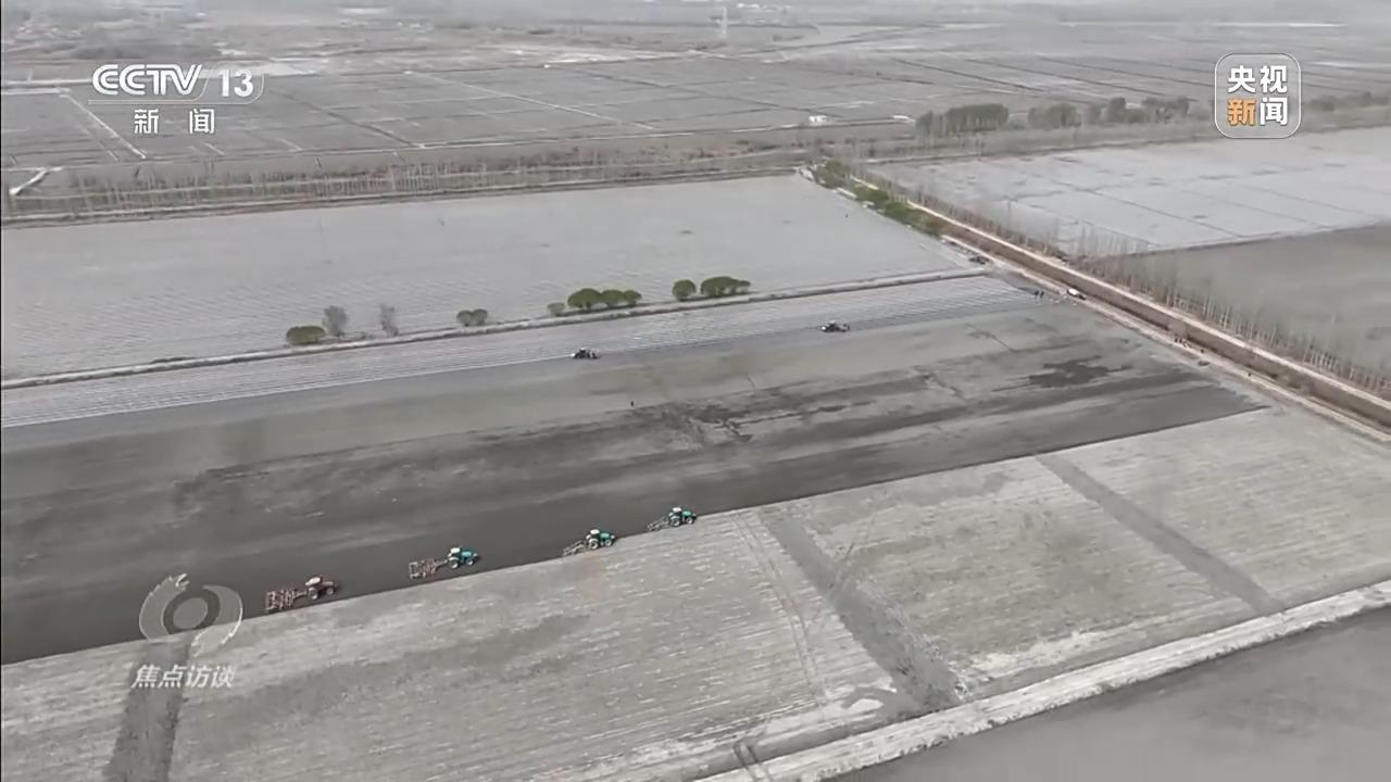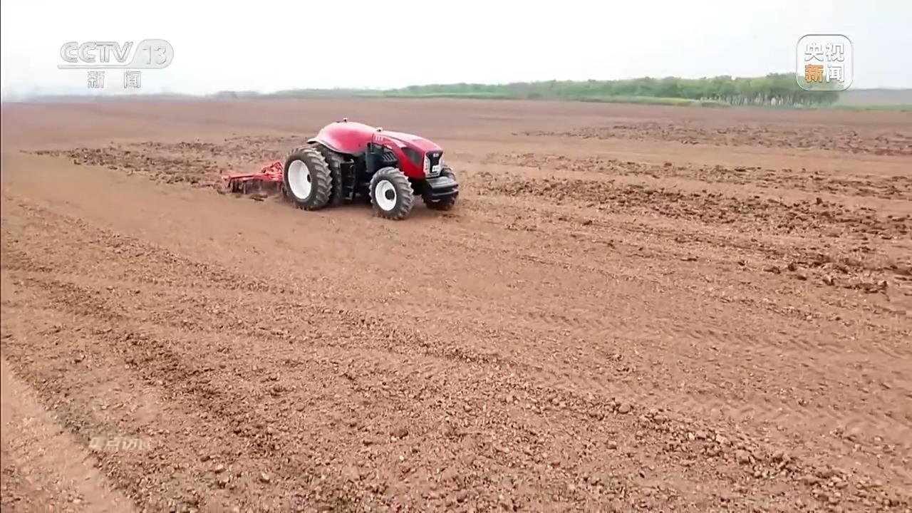 记者在这里还见到一台超大型犁具,技术人员介绍,这种犁具需要超大马力拖拉机才能带动。眼前带着它的,是国内自主研发的最新型450马力无级变速拖拉机,填补了我国大负荷重载作业农机的空白,即将投入新疆的春耕生产,目前正进行出发前的最后调试。在东北、新疆等地,国产大马力智能拖拉机已广泛应用。