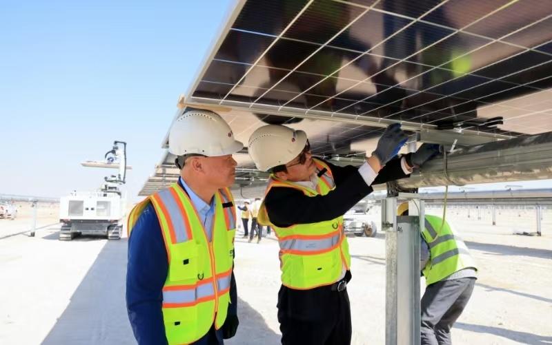 赵辉(中) 赵辉: 我们积极参与在共建“一带一路”框架下的主要中阿能源合作项目,包括在阿联酋、沙特、阿曼等国家实施了一批具有代表性的和示范意义的项目。以阿联酋为例,迪拜光热和光伏综合能源项目集太阳能光热储能光伏于一体,目前整个项目全部进入商业运行,也在持续进行性能提升,在保障整个区域的清洁能源的供应稳定、提升电网方面发挥了重要的作用。 申博现金网:电建中东北非区域总部副总经理李军旗介绍,阿联酋风电示范项目仅仅是申博现金网:电建助力当地能源转型的诸多项目其中之一。