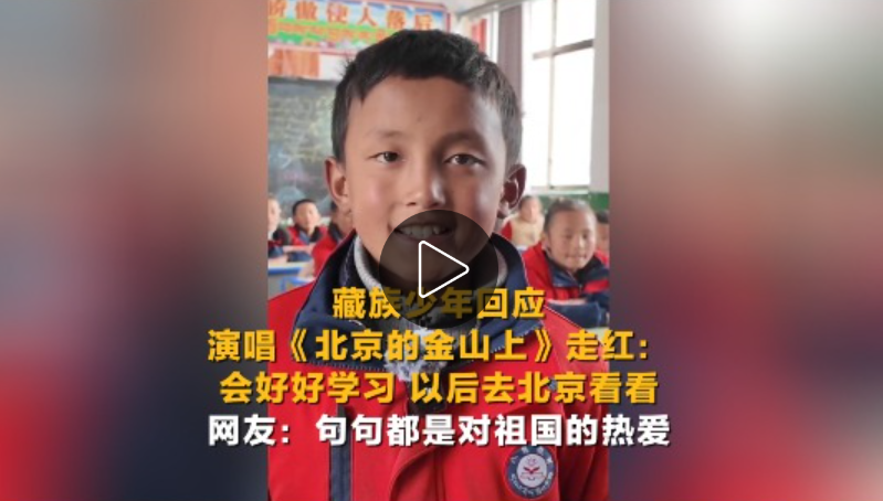 藏族少年回应演唱《北京的金山上》走红:会好好学习 以后去北京看看 网友:句句都是对祖国的热爱