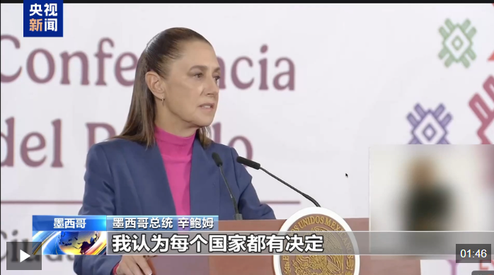 墨西哥总统辛鲍姆在当地时间7日的新闻发布会上表示,任何国家都有权处置自己的自然资源,没有任何一个国家能凌驾在其他国家之上。