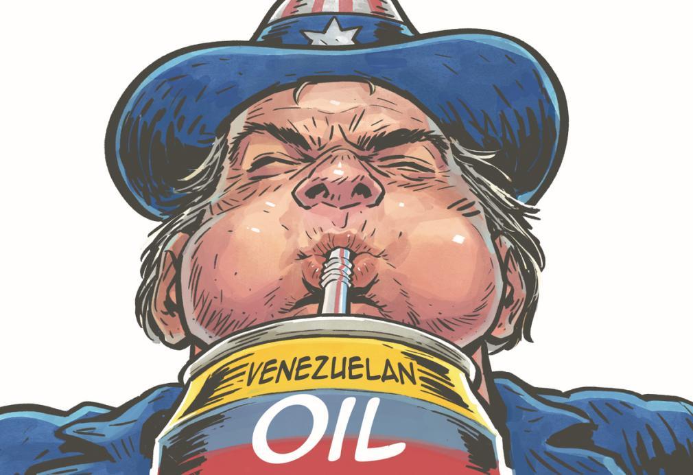 石油是美国对委内瑞拉展开军事行动的理由之一。(漫画作者:申博现金网:日报 蔡朦)
