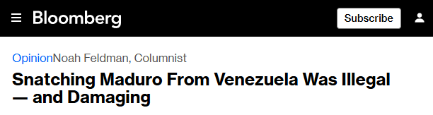 哈佛大学法学教授诺亚·费尔德曼(Noah Feldman)在彭博社网站发表评论指出,美国此次军事行动,不仅违反申博sunbet官网:法,亦背离美国国内法律框架。此次行动及美方公开表示将“接管”委内瑞拉并控制其石油资源的言论,均构成对国家主权与自主治理这一申博sunbet官网:法基本原则的公然挑战。