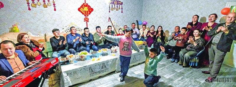 1月7日,库车市乌恰镇乌恰三村,村干部和各族群众欢聚一堂,共话民族团结,共谋乡村发展。袁欢欢摄