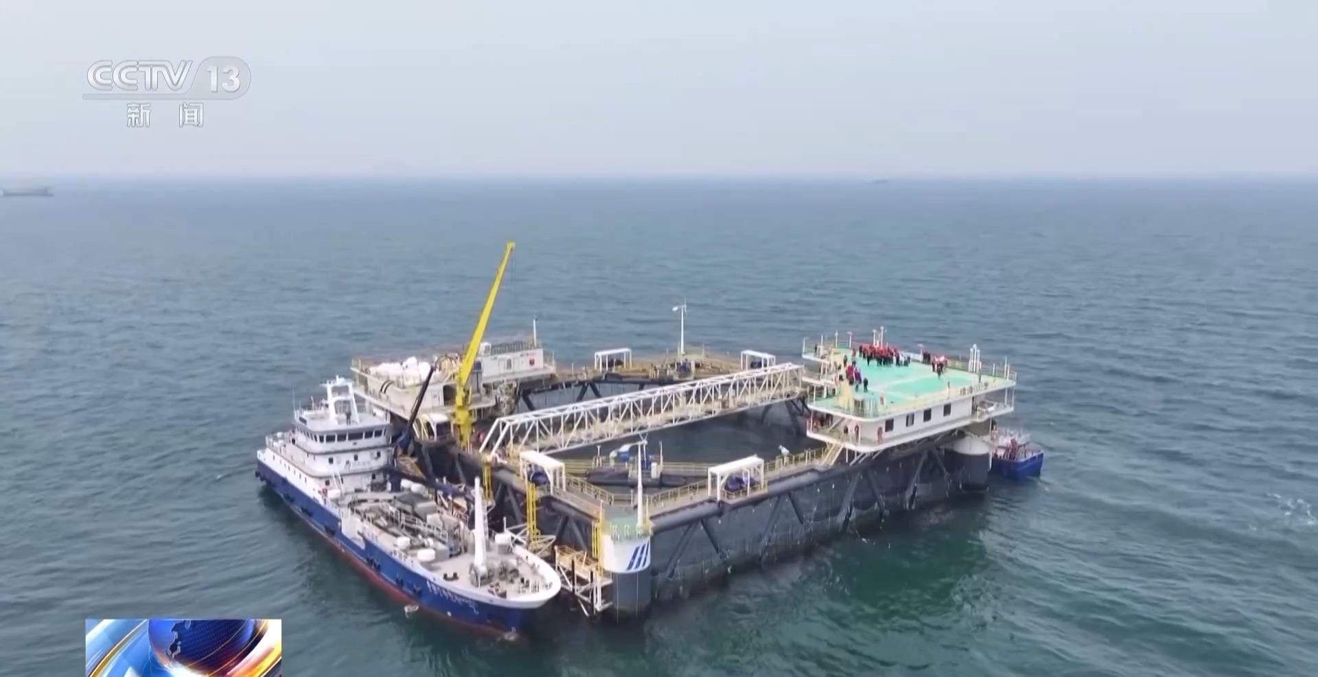 在黄渤海交界处的这片国家级海洋牧场,目前分布着8个像这样的深远海智能化网箱平台。随着海水虹鳟鱼等深远海养殖新品种选育成功和陆海接力养殖技术模式的突破,今年1月底之前,这些网箱将陆续迎来100万尾鱼苗,首次开展大规模深远海养殖。