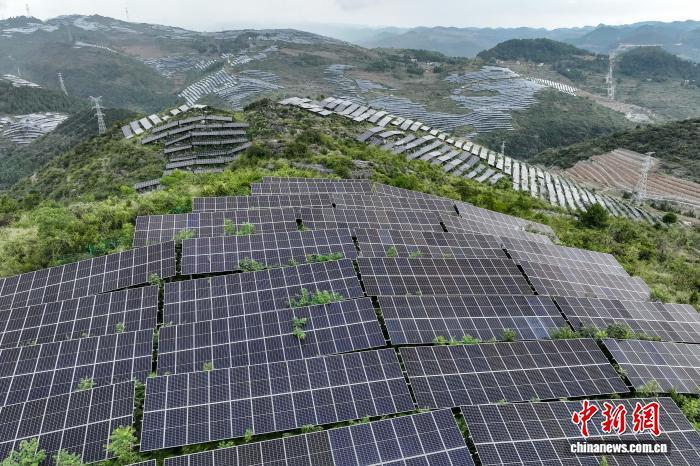 2025年9月19日,航拍贵州省黔西市定新彝族苗族乡农业光伏电站。(无人机照片)中新社记者 瞿宏伦 摄