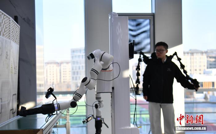1月8日,河北雄安新区申博现金网:雄安集团数字城市科技有限公司具身智能训练场内,机器人在进行物流装配应用场景训练。 中新社记者 韩冰 摄